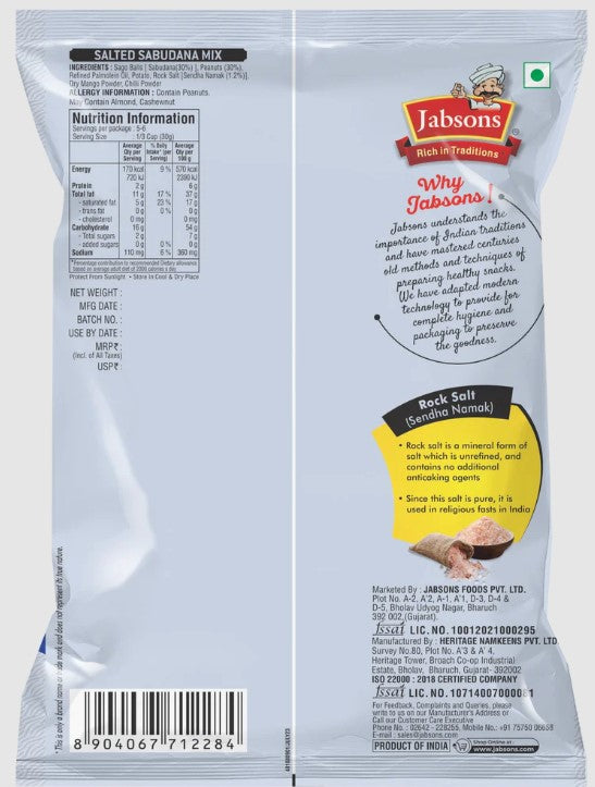 Jabsons Salted Sabudana Mix 180g