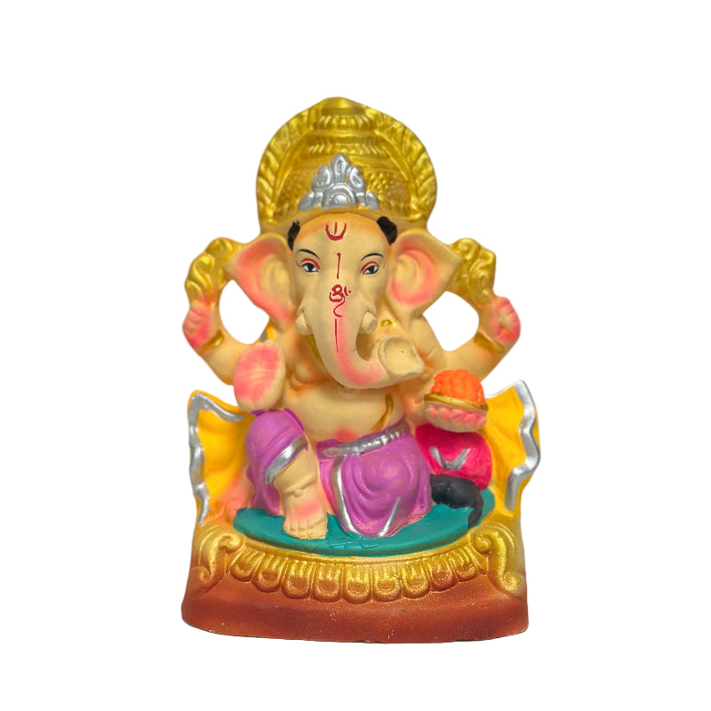 Coloured Clay Ganesh Idol-06 ( 8 inch - Violet Colour Design)